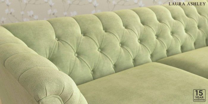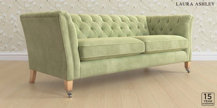 6.12.13 Buy Chatsworth Button Back by Laura Ashley 3 Seater Sofa Orla Pale Hedgerow Green Straight Chrome Castor - Light Oak from the Next UK online shop Click here to use our accessible website