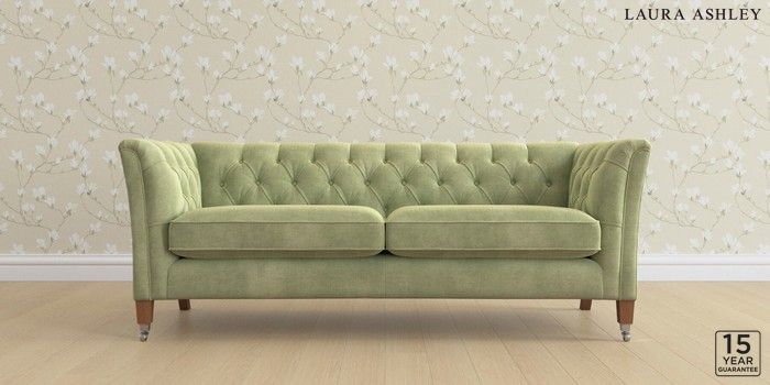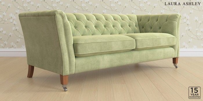 6.12.13 Buy Chatsworth Button Back by Laura Ashley 3 Seater Sofa Orla Pale Hedgerow Green Straight Chrome Castor - Teak from the Next UK online shop Click here to use our accessible website