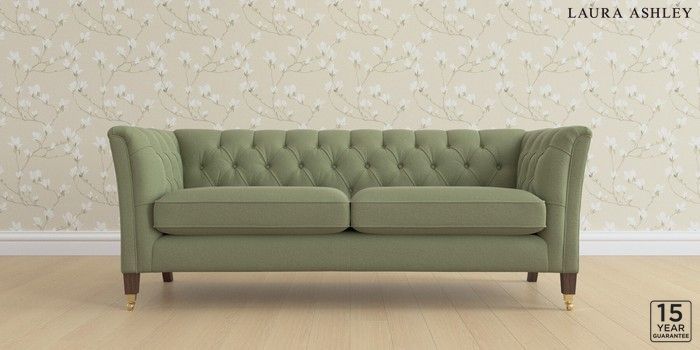 6.12.13 Buy Chatsworth Button Back by Laura Ashley 3 Seater Sofa Peyton Hedgerow Green Straight Brass Castor - Chestnut from the Next UK online shop Click here to use our accessible website