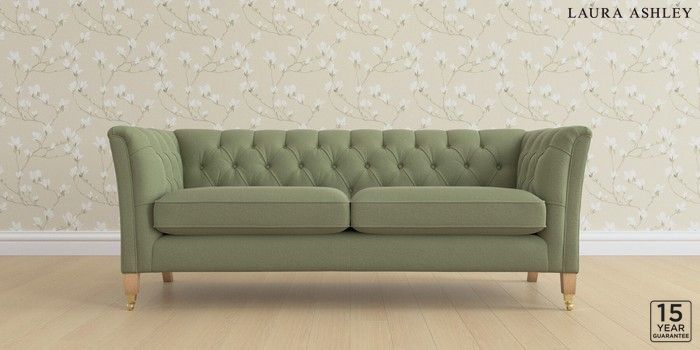 6.12.13 Buy Chatsworth Button Back by Laura Ashley 3 Seater Sofa Peyton Hedgerow Green Straight Brass Castor - Light Oak from the Next UK online shop Click here to use our accessible website