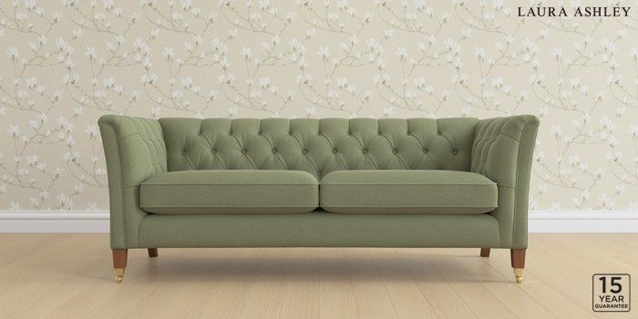 7.0.3 Buy Chatsworth Button Back by Laura Ashley 3 Seater Sofa Peyton Hedgerow Green Straight Brass Castor - Teak from the Next UK online shop Click here to use our accessible website