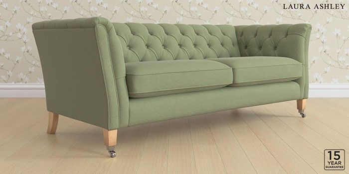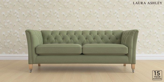 6.12.13 Buy Chatsworth Button Back by Laura Ashley 3 Seater Sofa Peyton Hedgerow Green Straight Chrome Castor - Light Oak from the Next UK online shop Click here to use our accessible website