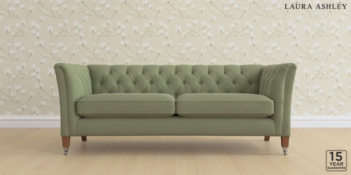 6.12.13 Buy Chatsworth Button Back by Laura Ashley 3 Seater Sofa Peyton Hedgerow Green Straight Chrome Castor - Teak from the Next UK online shop Click here to use our accessible website