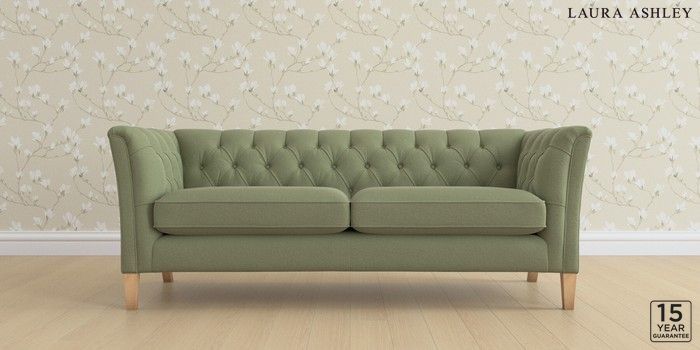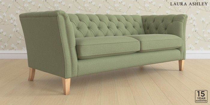 6.12.13 Buy Chatsworth Button Back by Laura Ashley 3 Seater Sofa Peyton Hedgerow Green Straight Mid - Light Oak from the Next UK online shop Click here to use our accessible website