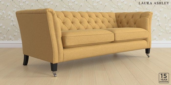 6.12.13 Buy Chatsworth Button Back by Laura Ashley 3 Seater Sofa Peyton Ochre Yellow Straight Chrome Castor - Black from the Next UK online shop Click here to use our accessible website