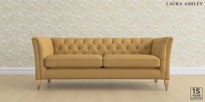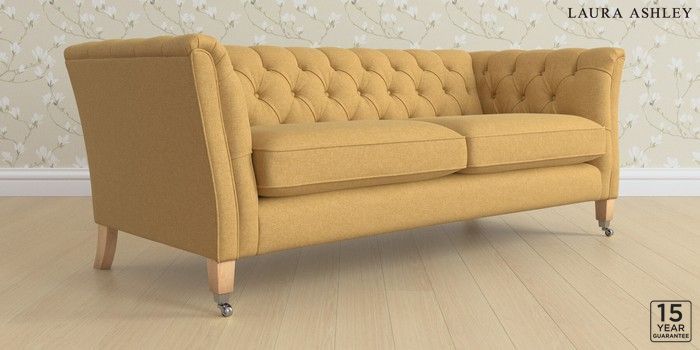 6.12.13 Buy Chatsworth Button Back by Laura Ashley 3 Seater Sofa Peyton Ochre Yellow Straight Chrome Castor - Light Oak from the Next UK online shop Click here to use our accessible website
