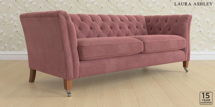 6.12.13 Buy Chatsworth Button Back by Laura Ashley 3 Seater Sofa Peyton Plum Purple Straight Chrome Castor - Teak from the Next UK online shop Click here to use our accessible website