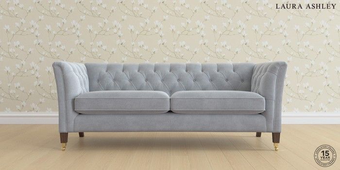 6.12.1 Buy Chatsworth Button Back by Laura Ashley 3 Seater Sofa Peyton Powder Blue Straight Brass Castor - Chestnut from the Next UK online shop Click here to use our accessible website