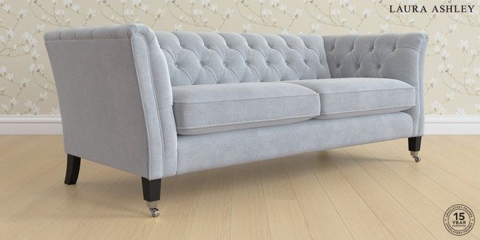 6.12.1 Buy Chatsworth Button Back by Laura Ashley 3 Seater Sofa Peyton Powder Blue Straight Chrome Castor - Black from the Next UK online shop Click here to use our accessible website