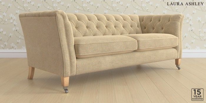6.12.13 Buy Chatsworth Button Back by Laura Ashley 3 Seater Sofa Peyton Sable Natural Straight Chrome Castor - Light Oak from the Next UK online shop Click here to use our accessible website