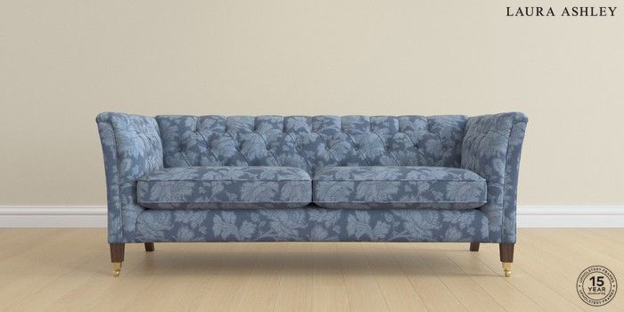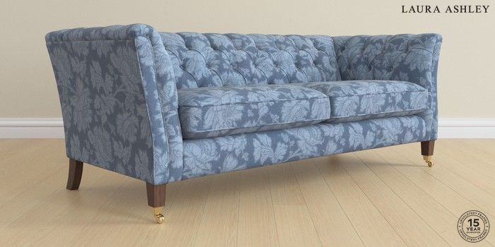 6.12.1 Buy Chatsworth Button Back by Laura Ashley 3 Seater Sofa Tamara Dusky Seaspray Blue Straight Brass Castor - Chestnut from the Next UK online shop Click here to use our accessible website