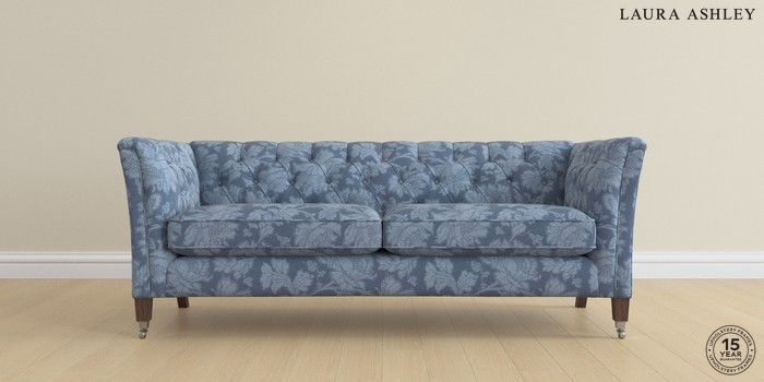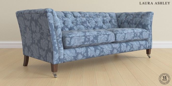 6.12.1 Buy Chatsworth Button Back by Laura Ashley 3 Seater Sofa Tamara Dusky Seaspray Blue Straight Chrome Castor - Chestnut from the Next UK online shop Click here to use our accessible website