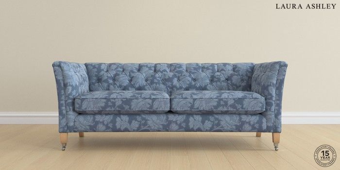 6.12.1 Buy Chatsworth Button Back by Laura Ashley 3 Seater Sofa Tamara Dusky Seaspray Blue Straight Chrome Castor - Light Oak from the Next UK online shop Click here to use our accessible website