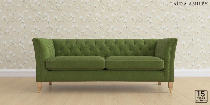 6.12.1 Buy Chatsworth Button Back by Laura Ashley 3 Seater Sofa Tichwell Olive Green Straight Brass Castor - Light Oak from the Next UK online shop Click here to use our accessible website