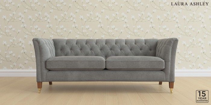 6.12.13 Buy Chatsworth Button Back by Laura Ashley 3 Seater Sofa Wooton Dark Steel Grey Straight Brass Castor - Teak from the Next UK online shop Click here to use our accessible website