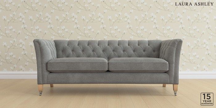 6.12.1 Buy Chatsworth Button Back by Laura Ashley 3 Seater Sofa Wooton Dark Steel Grey Straight Chrome Castor - Light Oak from the Next UK online shop Click here to use our accessible website