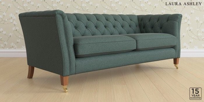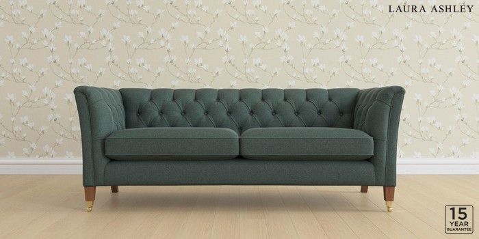 6.12.1 Buy Chatsworth Button Back by Laura Ashley 3 Seater Sofa Wooton Forest Green Straight Brass Castor - Teak from the Next UK online shop Click here to use our accessible website