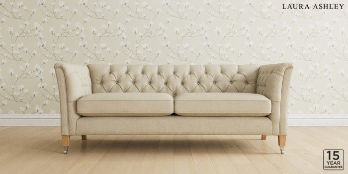 6.12.13 Buy Chatsworth Button Back by Laura Ashley 3 Seater Sofa Wooton Natural Straight Chrome Castor - Light Oak from the Next UK online shop Click here to use our accessible website