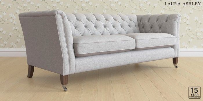 6.12.1 Buy Chatsworth Button Back by Laura Ashley 3 Seater Sofa Wooton Pale Steel Grey Straight Chrome Castor - Chestnut from the Next UK online shop Click here to use our accessible website