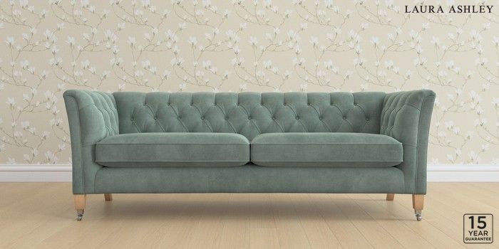 6.12.13 Buy Chatsworth Button Back by Laura Ashley 4 Seater Sofa Ailsworth Fern Green Straight Chrome Castor - Light Oak from the Next UK online shop Click here to use our accessible website