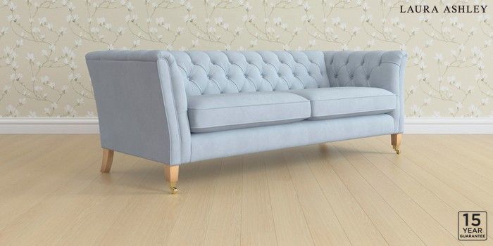 6.12.1 Buy Chatsworth Button Back by Laura Ashley 4 Seater Sofa Ailsworth Newport Blue Straight Brass Castor - Light Oak from the Next UK online shop Click here to use our accessible website