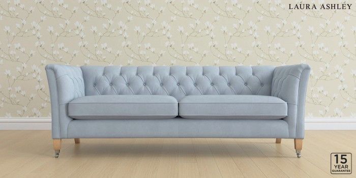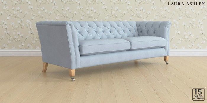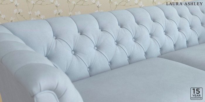 6.12.13 Buy Chatsworth Button Back by Laura Ashley 4 Seater Sofa Ailsworth Newport Blue Straight Chrome Castor - Light Oak from the Next UK online shop Click here to use our accessible website