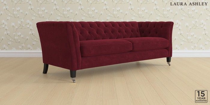 6.12.1 Buy Chatsworth Button Back by Laura Ashley 4 Seater Sofa Alwyn Velvet Burgundy Red Straight Chrome Castor - Black from the Next UK online shop Click here to use our accessible website