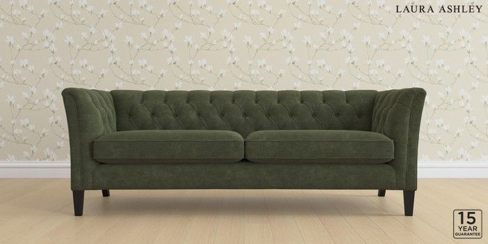 6.12.13 Buy Chatsworth Button Back by Laura Ashley 4 Seater Sofa Alwyn Velvet Ivy Green Straight Mid - Black from the Next UK online shop Click here to use our accessible website
