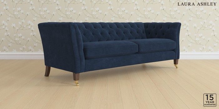 6.12.13 Buy Chatsworth Button Back by Laura Ashley 4 Seater Sofa Alwyn Velvet Midnight Navy Straight Brass Castor - Chestnut from the Next UK online shop Click here to use our accessible website