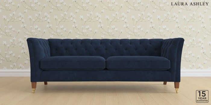 6.12.13 Buy Chatsworth Button Back by Laura Ashley 4 Seater Sofa Alwyn Velvet Midnight Navy Straight Brass Castor - Teak from the Next UK online shop Click here to use our accessible website