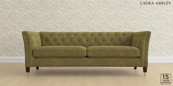 6.12.1 Buy Chatsworth Button Back by Laura Ashley 4 Seater Sofa Alwyn Velvet Olive Green Straight Brass Castor - Black from the Next UK online shop Click here to use our accessible website