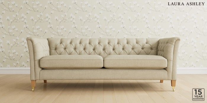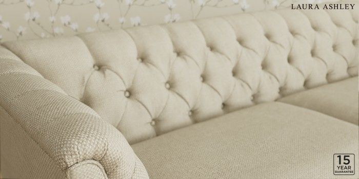 6.12.1 Buy Chatsworth Button Back by Laura Ashley 4 Seater Sofa Anneliese Natural Straight Brass Castor - Light Oak from the Next UK online shop Click here to use our accessible website