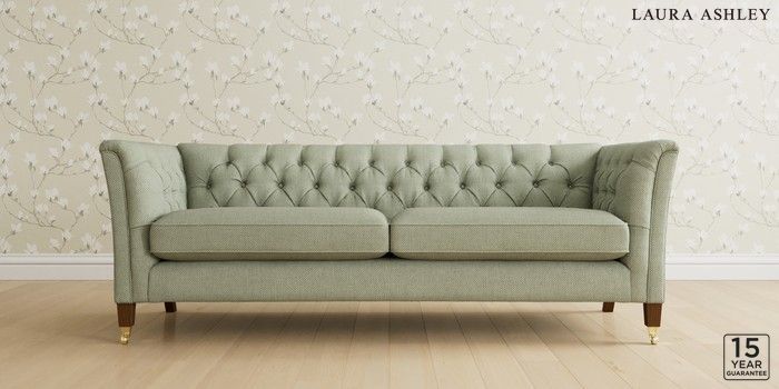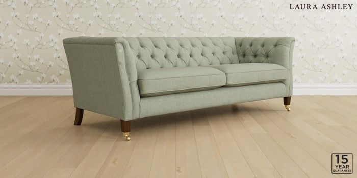 6.12.1 Buy Chatsworth Button Back by Laura Ashley 4 Seater Sofa Anneliese Sage Green Straight Brass Castor - Teak from the Next UK online shop Click here to use our accessible website
