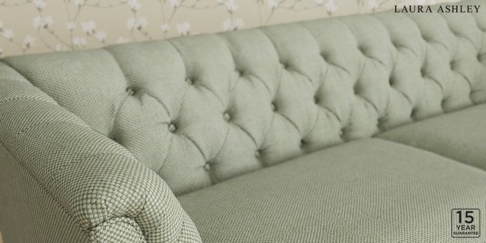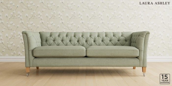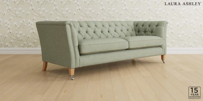 6.12.13 Buy Chatsworth Button Back by Laura Ashley 4 Seater Sofa Anneliese Sage Green Straight Chrome Castor - Light Oak from the Next UK online shop Click here to use our accessible website