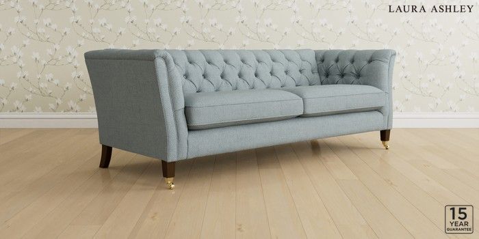 6.12.1 Buy Chatsworth Button Back by Laura Ashley 4 Seater Sofa Anneliese Seaspray Blue Straight Brass Castor - Chestnut from the Next UK online shop Click here to use our accessible website