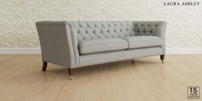 6.12.1 Buy Chatsworth Button Back by Laura Ashley 4 Seater Sofa Anneliese Steel Grey Straight Chrome Castor - Teak from the Next UK online shop Click here to use our accessible website