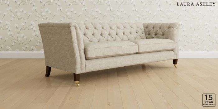 6.12.1 Buy Chatsworth Button Back by Laura Ashley 4 Seater Sofa Bainton Natural Straight Brass Castor - Chestnut from the Next UK online shop Click here to use our accessible website