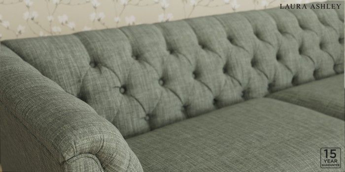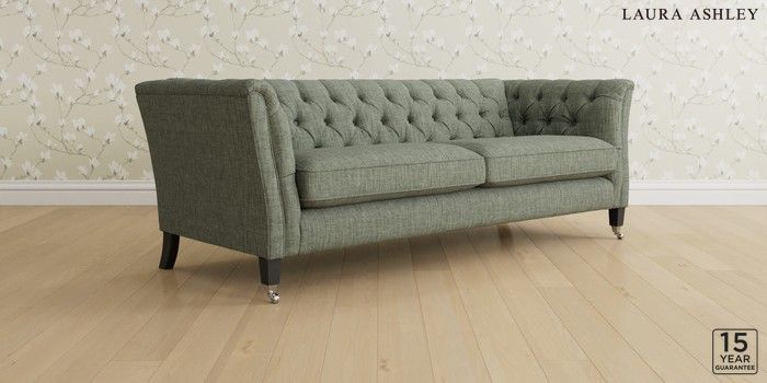 6.12.13 Buy Chatsworth Button Back by Laura Ashley 4 Seater Sofa Bainton Sage Green Straight Chrome Castor - Black from the Next UK online shop Click here to use our accessible website