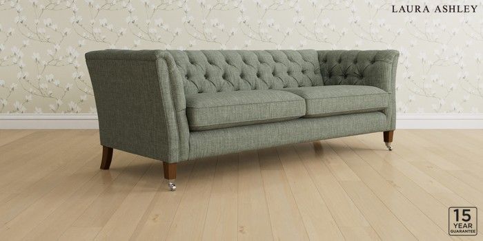 6.12.13 Buy Chatsworth Button Back by Laura Ashley 4 Seater Sofa Bainton Sage Green Straight Chrome Castor - Teak from the Next UK online shop Click here to use our accessible website