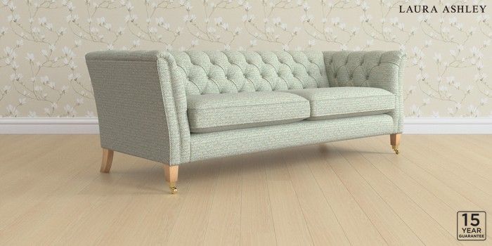 6.12.1 Buy Chatsworth Button Back by Laura Ashley 4 Seater Sofa Borwick Newport Blue Straight Brass Castor - Light Oak from the Next UK online shop Click here to use our accessible website