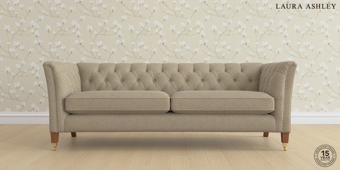 6.12.1 Buy Chatsworth Button Back by Laura Ashley 4 Seater Sofa Chequers Hazelnut Natural Straight Brass Castor - Teak from the Next UK online shop Click here to use our accessible website