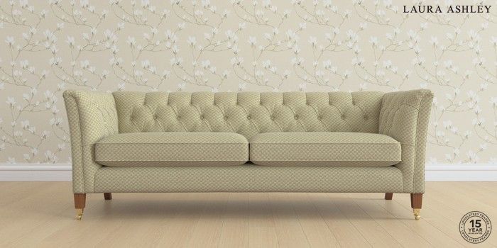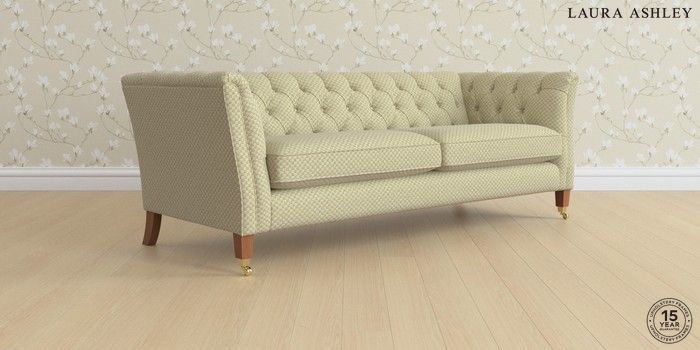 6.12.1 Buy Chatsworth Button Back by Laura Ashley 4 Seater Sofa Chequers Hedgerow Green Straight Brass Castor - Teak from the Next UK online shop Click here to use our accessible website