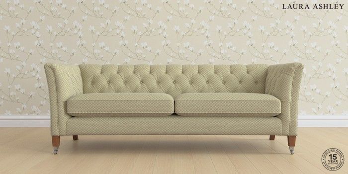 6.12.1 Buy Chatsworth Button Back by Laura Ashley 4 Seater Sofa Chequers Hedgerow Green Straight Chrome Castor - Teak from the Next UK online shop Click here to use our accessible website