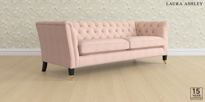 6.12.1 Buy Chatsworth Button Back by Laura Ashley 4 Seater Sofa Edwin Chenille Blush Pink Straight Brass Castor - Black from the Next UK online shop Click here to use our accessible website