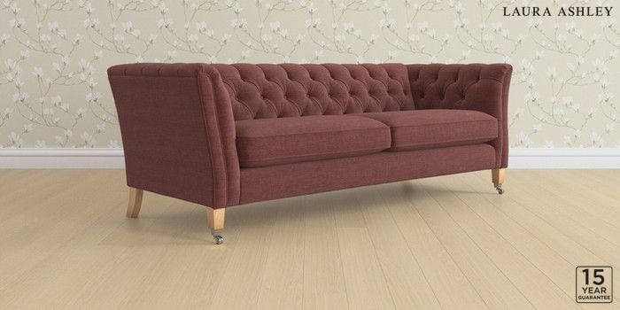 6.12.13 Buy Chatsworth Button Back by Laura Ashley 4 Seater Sofa Edwin Chenille Burgundy Red Straight Chrome Castor - Light Oak from the Next UK online shop Click here to use our accessible website