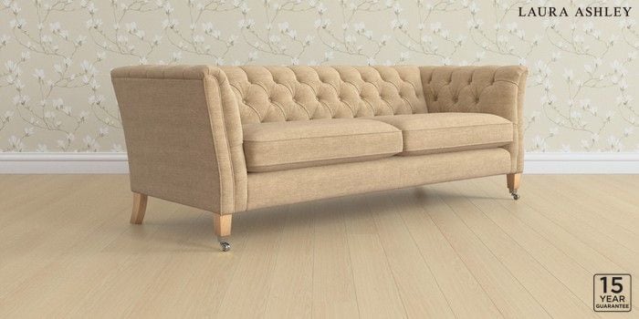6.12.1 Buy Chatsworth Button Back by Laura Ashley 4 Seater Sofa Edwin Chenille Gold Natural Straight Chrome Castor - Light Oak from the Next UK online shop Click here to use our accessible website