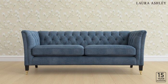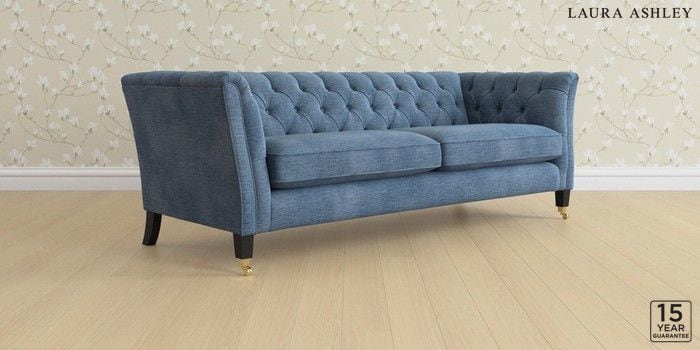6.12.1 Buy Chatsworth Button Back by Laura Ashley 4 Seater Sofa Edwin Chenille Seaspray Blue Straight Brass Castor - Black from the Next UK online shop Click here to use our accessible website
