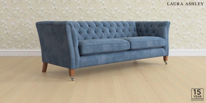 6.12.1 Buy Chatsworth Button Back by Laura Ashley 4 Seater Sofa Edwin Chenille Seaspray Blue Straight Chrome Castor - Teak from the Next UK online shop Click here to use our accessible website
