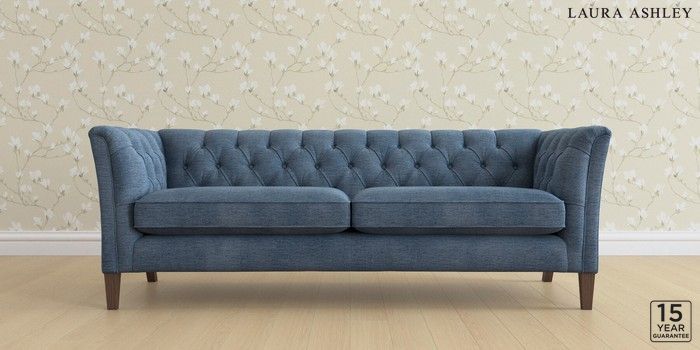 6.12.1 Buy Chatsworth Button Back by Laura Ashley 4 Seater Sofa Edwin Chenille Seaspray Blue Straight Mid - Chestnut from the Next UK online shop Click here to use our accessible website
