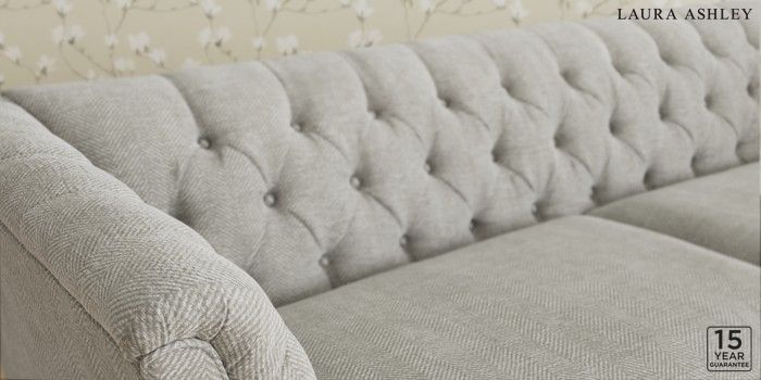 6.12.1 Buy Chatsworth Button Back by Laura Ashley 4 Seater Sofa Edwin Chenille Silver Grey Straight Brass Castor - Teak from the Next UK online shop Click here to use our accessible website